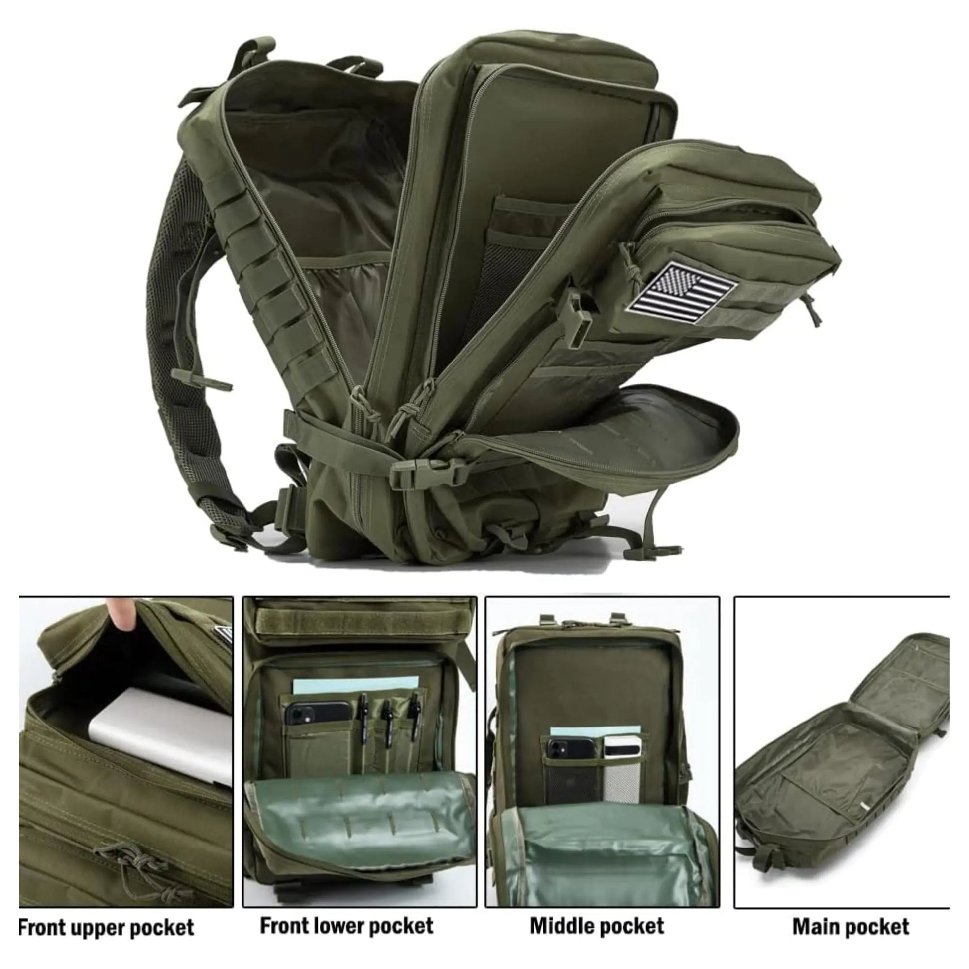 Notre sac à dos tactique militaire dispose d'une capacité de stockage importante. Compartiment principal spacieux avec plusieurs poches et séparateurs internes, offrant un vaste espace de rangement pour l'équipement et les produits de première nécessité.